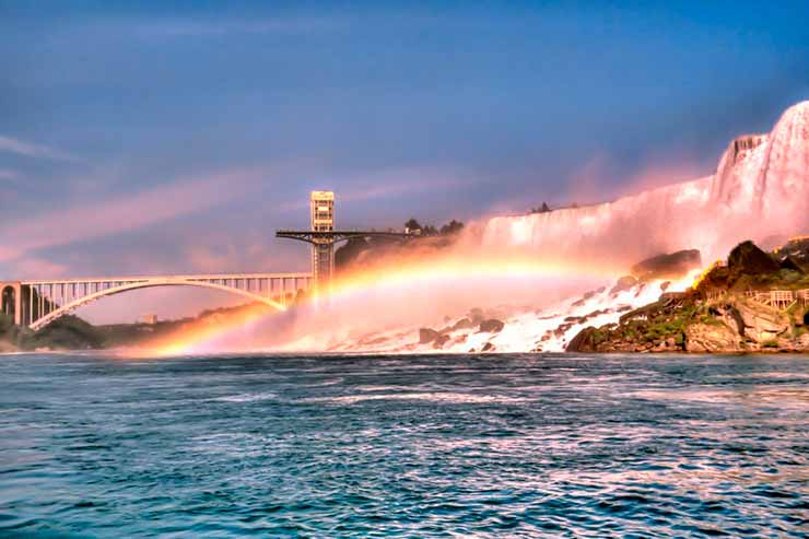 As famosas Cataratas do Niágara ficam na fronteira entre os Estados Unidos e o Canadá, mais especificamente nos estados de Nova York e Ontario. A Rainbow Bridge separa os dois países, e pode ser atravessada de carro ou a pé.