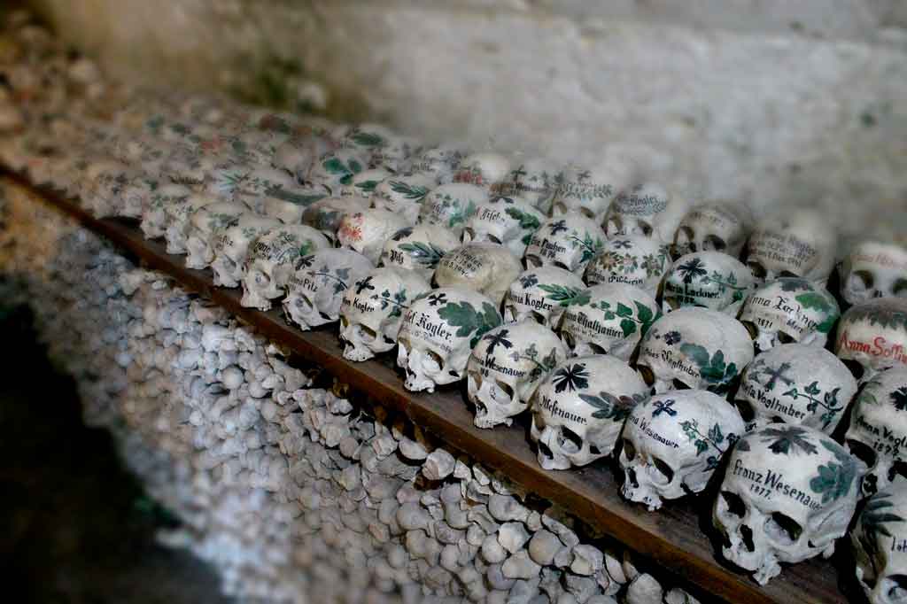 Visitar a Hallstatt Beinhaus é uma atração bem curiosa e, para alguns, um tanto quanto macabra. Trata-se da Capela de Ossos localizada perto da igreja católica.