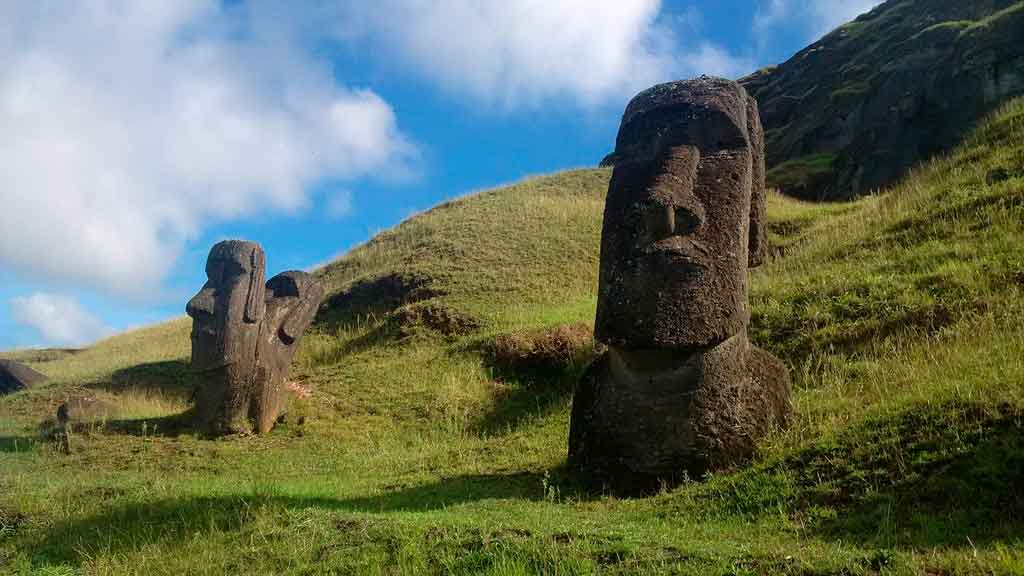 Teorias buscam explicar como se formaram os moais, as grandes e famosas estátuas de pedra que são a grande atração da ilha, e o declínio da civilização rapa nui.