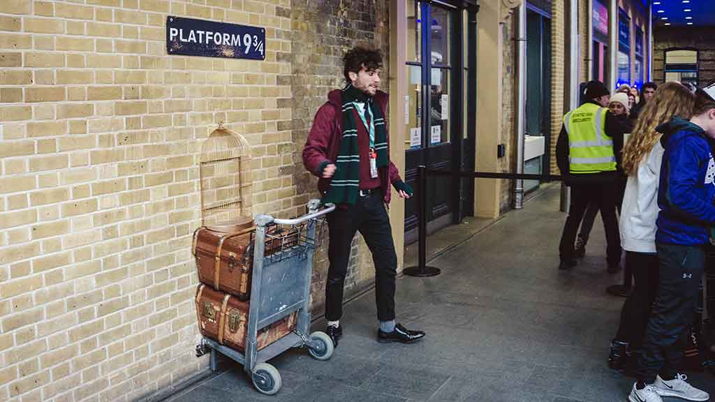 Lá, existe a famosa plataforma 9 ¾ do filme Harry Porter. Mesmo não sendo fã, vale aquela foto tradicional.