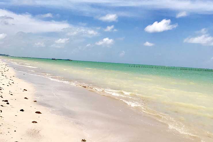 Essa praia não tem comércio e, durante a maré baixa, os banhistas conseguem caminhar vários metros dentro do mar.