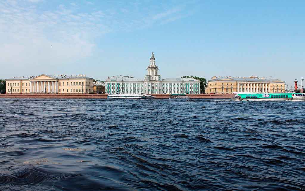 Um dos museus mais interessantes da cidade. O Museu Kunstkamera abriga importantes coleções de cultura material do planeta, com peças pertencentes ao Extremo Oriente e também à América do Sul.