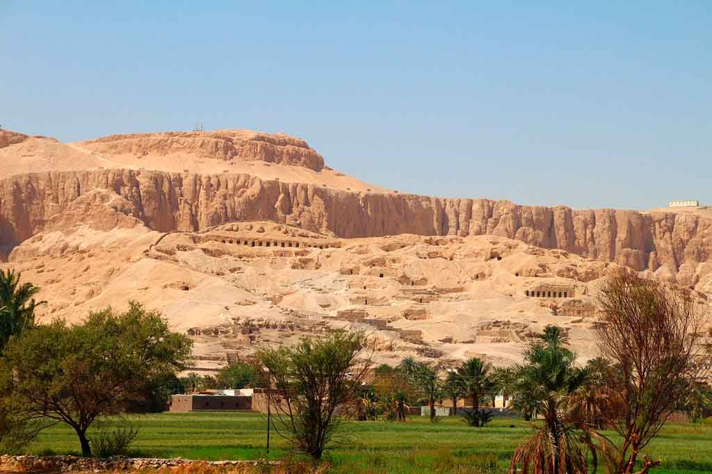 Localizada no alto de montanha rochosa, o complexo arquitetônico, datado dos séculos XVI e XI a.C., guarda tumbas de vários faraós e figuras poderosas egípcias.